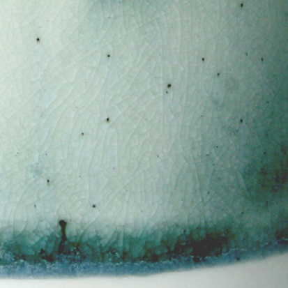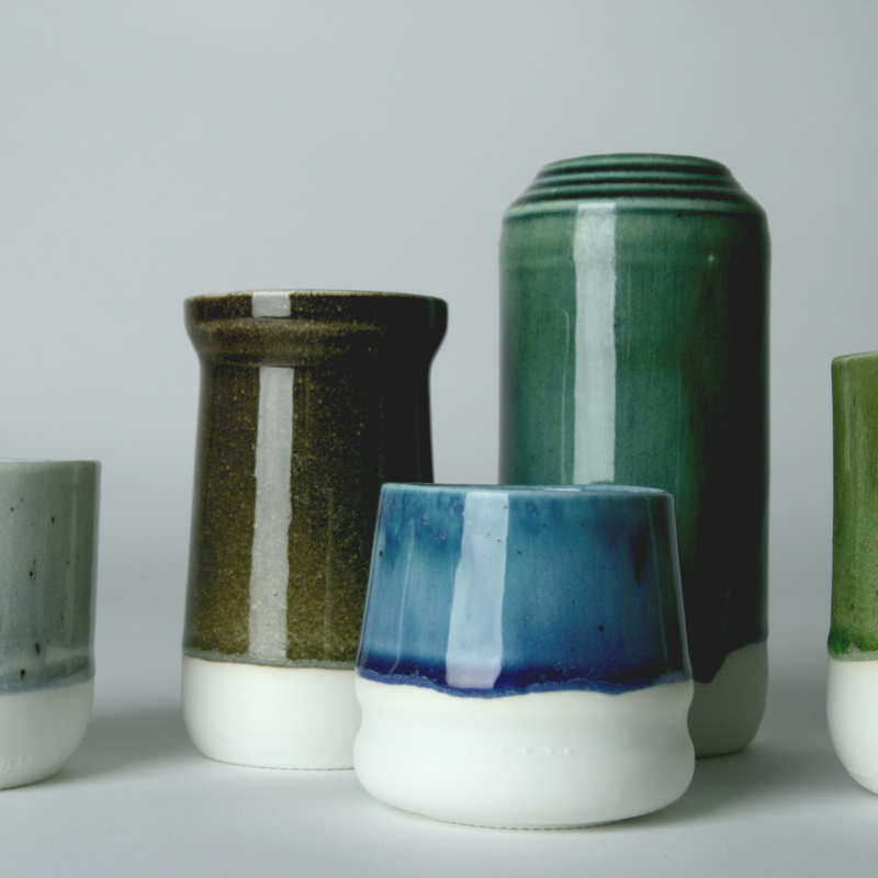 ENKEL GLAS was designed in 2015, to research the possibilities of using waste packaging glass as a ceramic glaze. The fine glass dust used for this glaze, is polluted with small bits of metal and other materials, showing as little dots and discolourations in the glaze. The design of the cup shows details from old glass jars, to refer to the origin of the glaze.