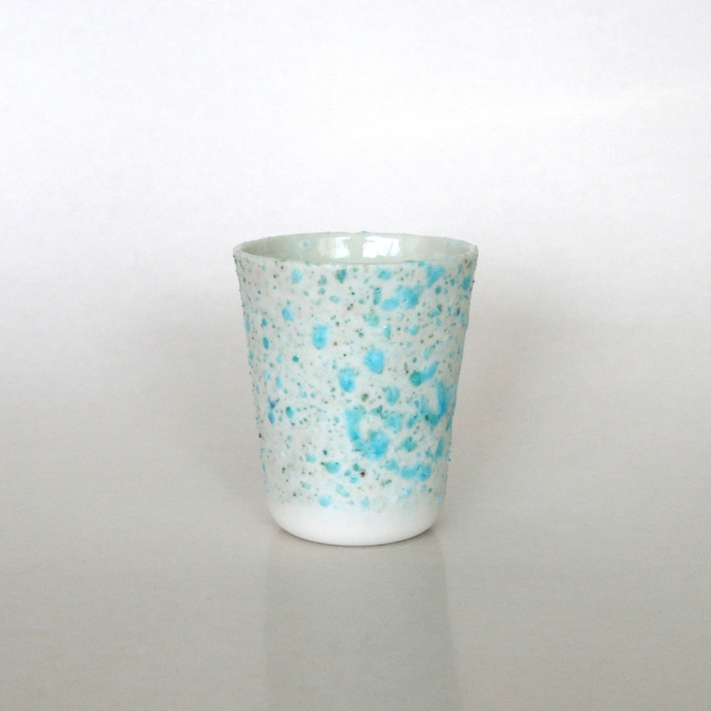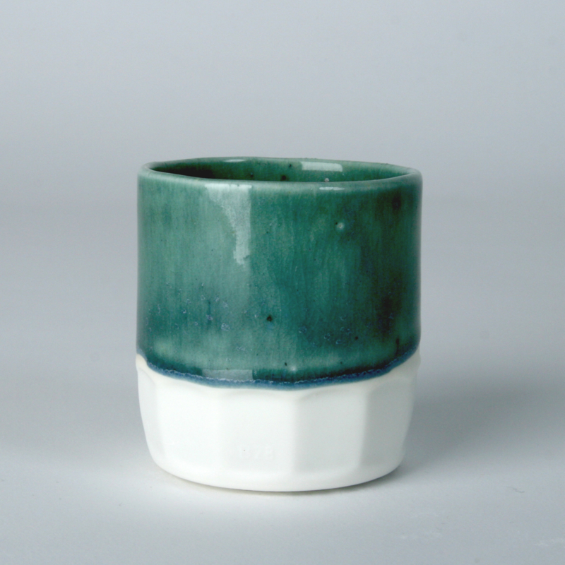 Porcelain cups and mugs, each uniquely glazed. Handmade in Utrecht by Ineke van der Werff. All items are dishwasher proof.