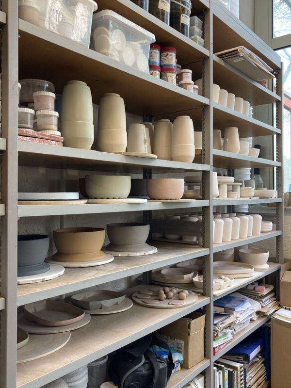 – Materiaal is aanwezig in de studio maar zit niet in de prijs inbegrepen. Je gebruikte materiaal wordt afgerekend per gewicht (€20/kg) voor de kosten van porselein/glazuur/stoken.